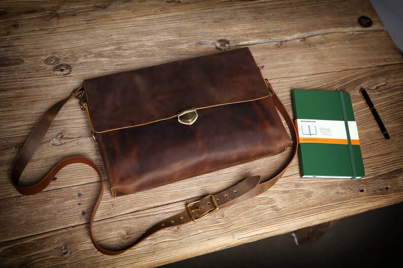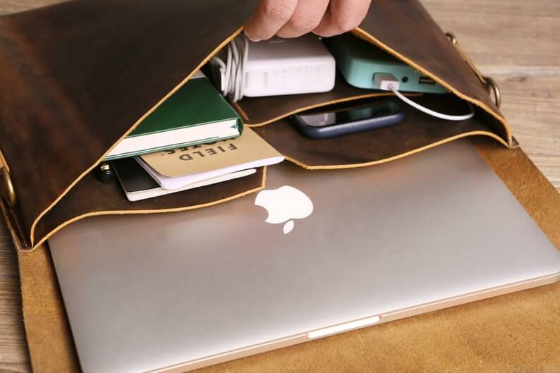 This portable and slim design computer bag is made from high quality full grain leather ,100% handmade ,especially the hand sewing. durable real leather with strong hand stitch , a perfect combination to have it meaningful and long-lasting use