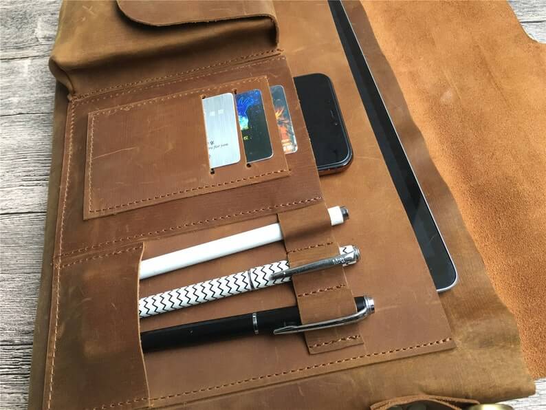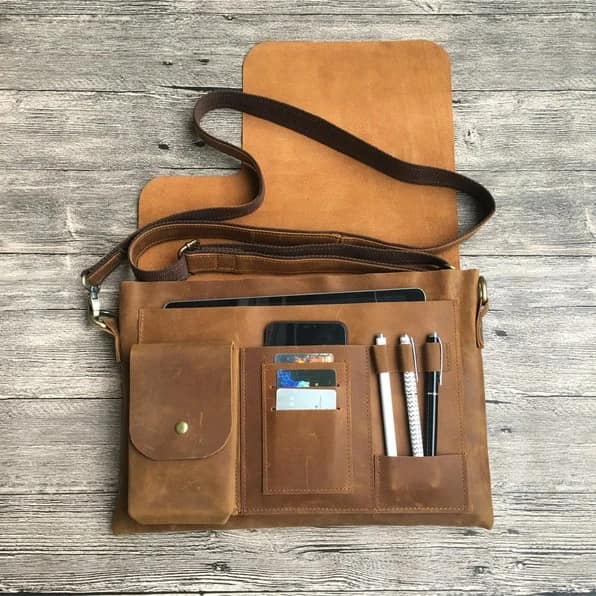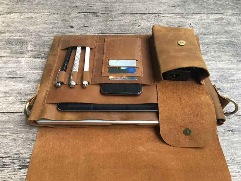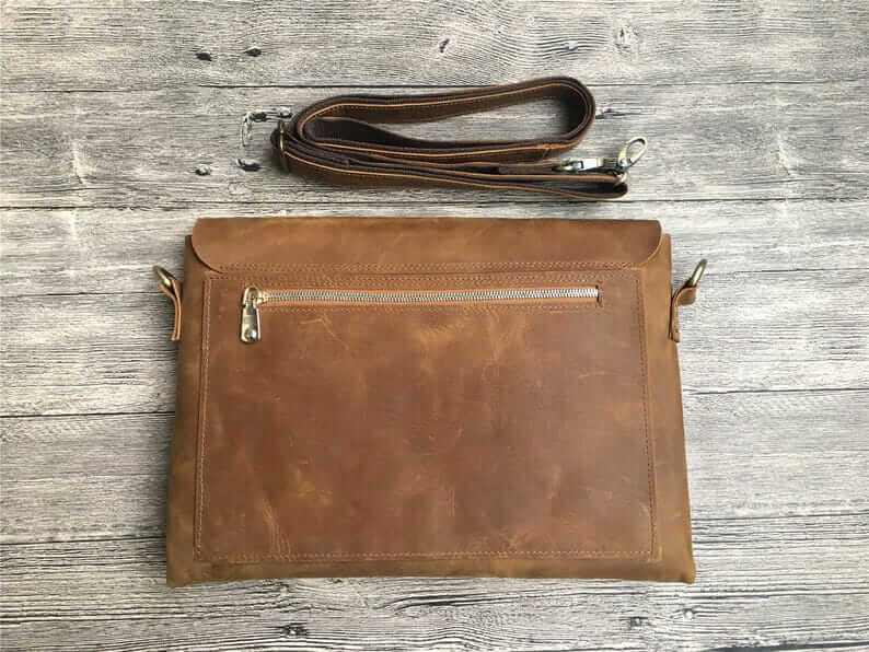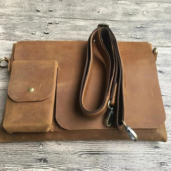 16 inches vintage leather cross shoulder bag with 60 inches adjustable shoulder strap for laptop and other travel accessories