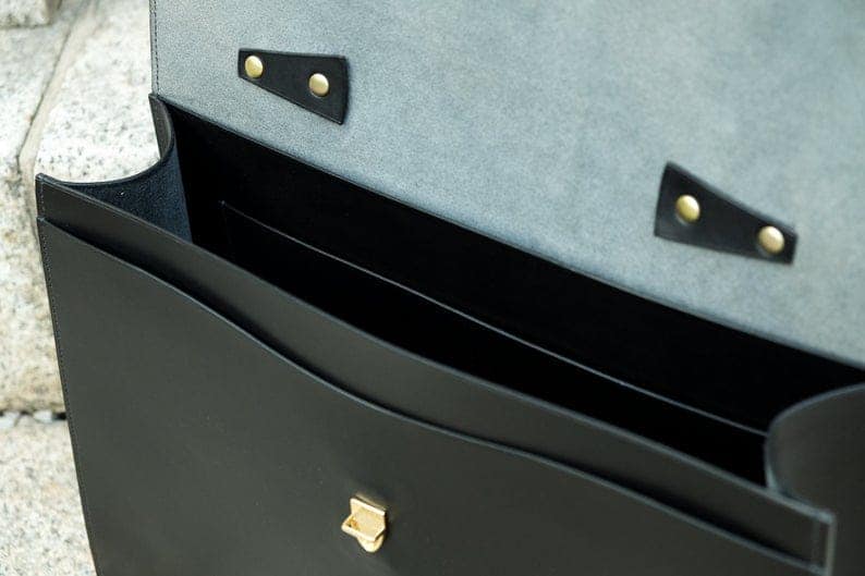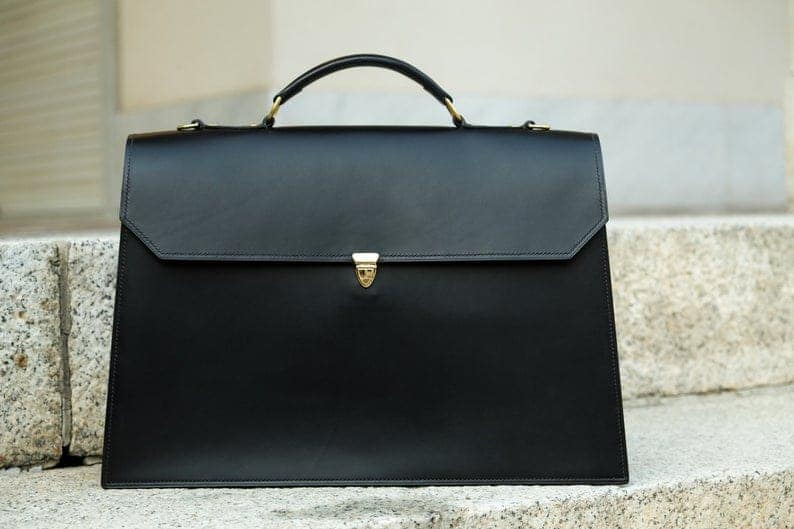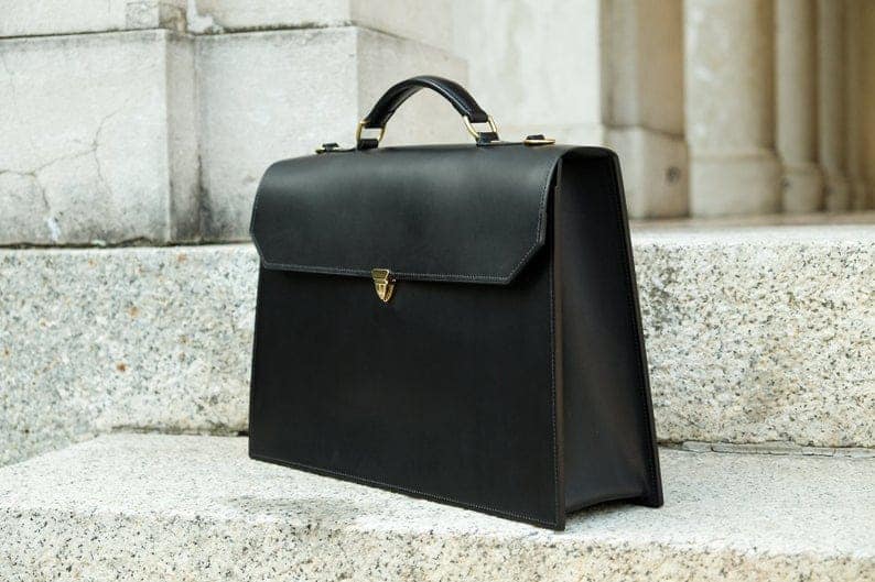 - Executive Black Leather Office Bag Unisex Office Bag Shoulder Bag Laptop Bag Leather Briefcase
