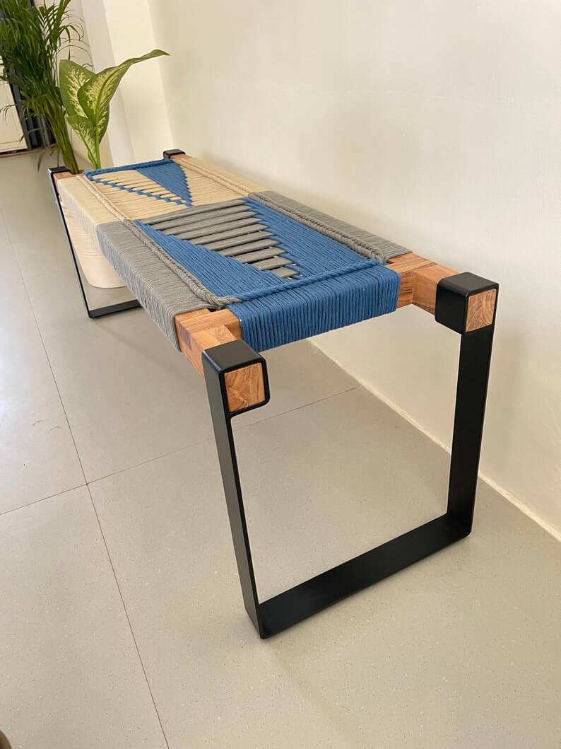 The woven bench is a handmade piece that brings a unique and stylish look to any entryway or living space. Each bench is crafted with care using a weaving technique with cotton cord and natural finish wood that is beautiful, functional and lasts for many years.