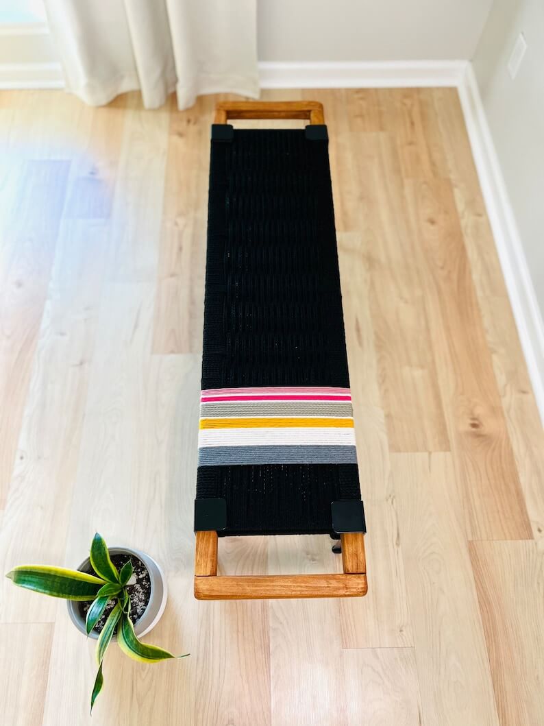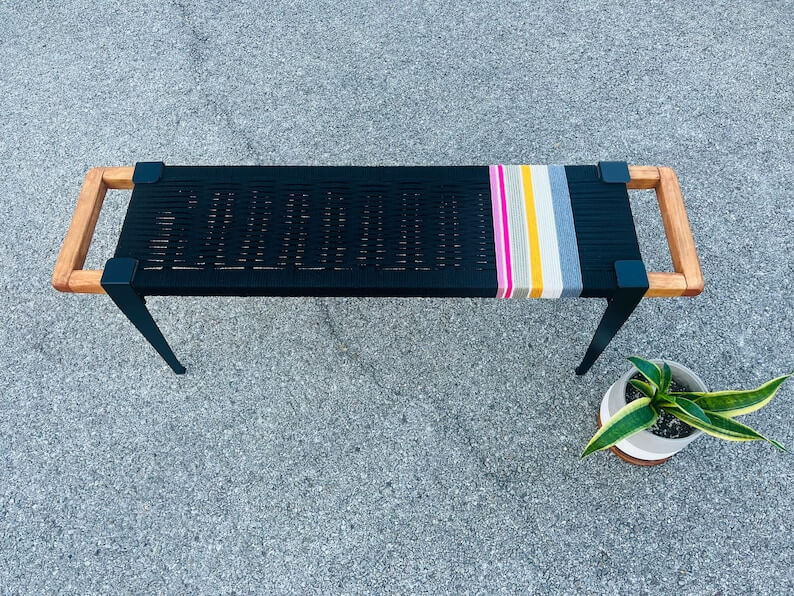 The woven bench is a handmade piece that brings a unique and stylish look to any entryway or living space. Each bench is crafted with care using a weaving technique with cotton cord and natural finish wood that is beautiful, functional and lasts for many years.