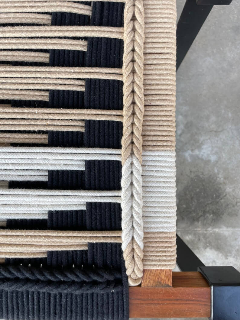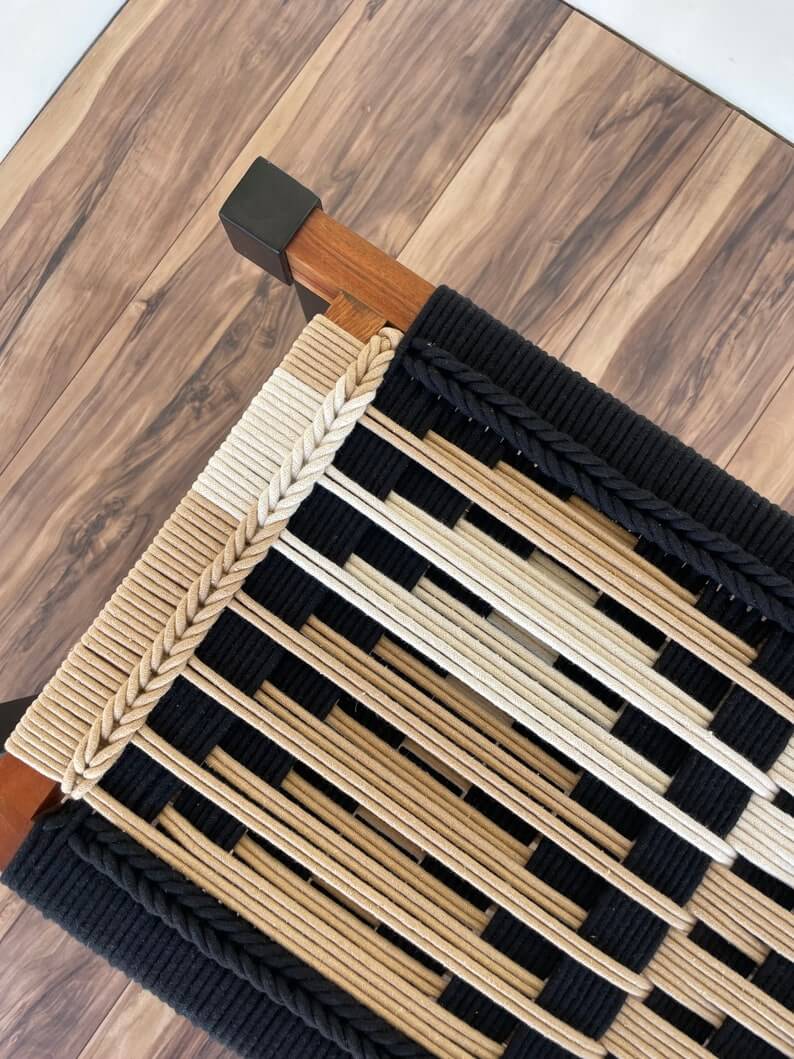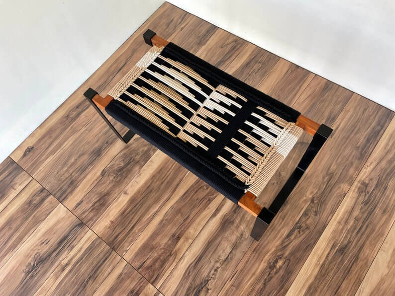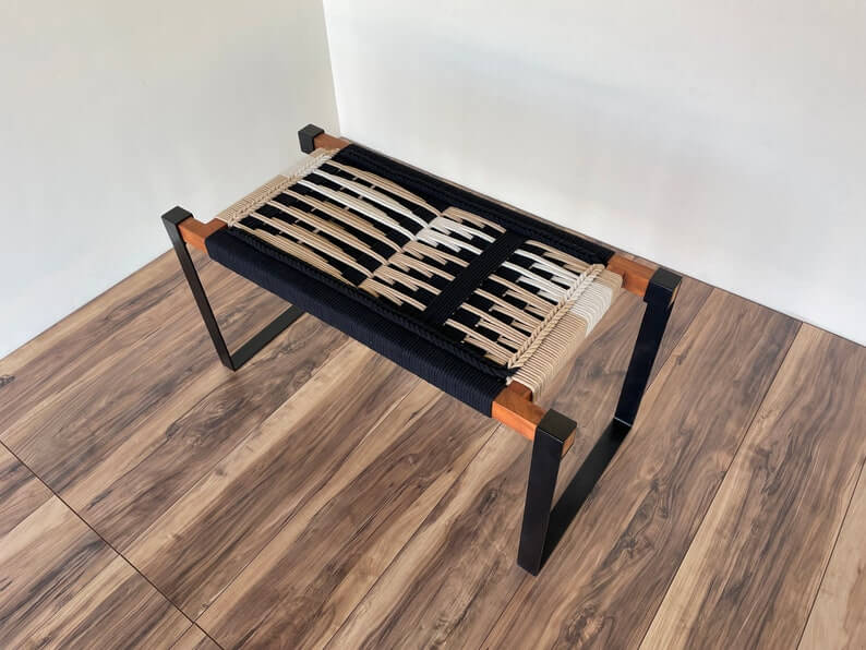 The woven bench is a handmade piece that brings a unique and stylish look to any entryway or living space. Each bench is crafted with care using a weaving technique with cotton cord and natural finish wood that is beautiful, functional and lasts for many years.