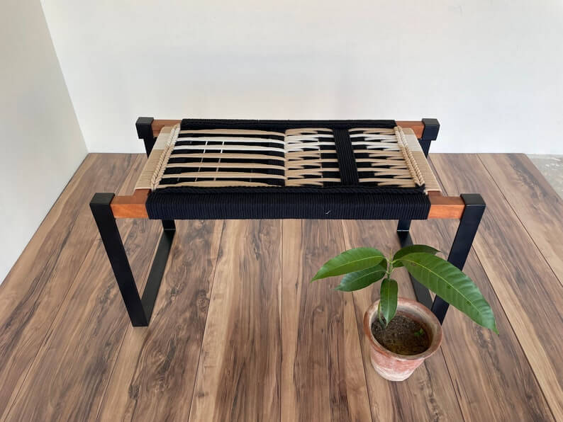 Hand Woven Bench •Stylish Bench Mid Century Woven Bench • Modern Entryway Bench • End Bench • Metal Bench • Charpoy Bench, Hand Woven Bench