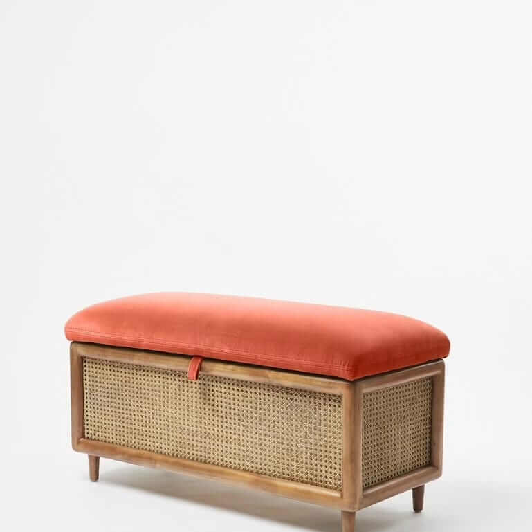 Handmade Rattan Storage Ottoman / Bench with storage/ storage bench / End of Bed Storage Bench