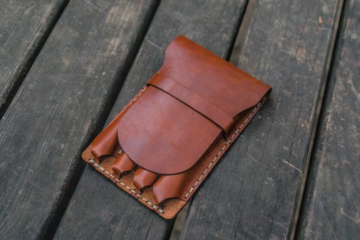 Hand stitched using waxed polyamide thread the edges are beveled waxed and burnished for a finished look