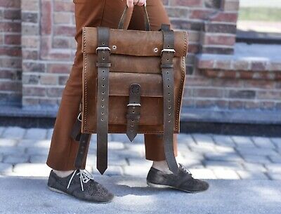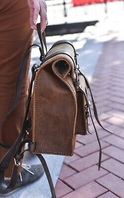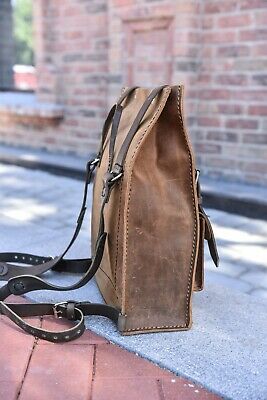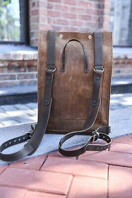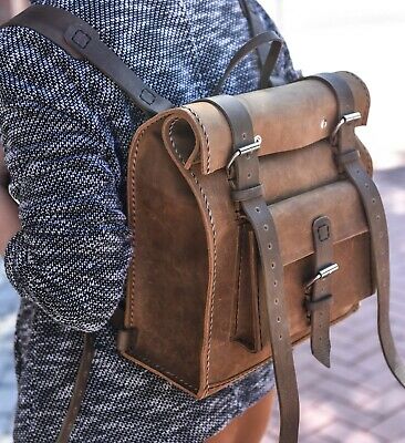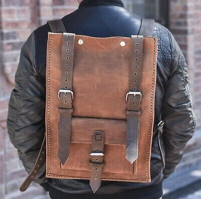 The backpack is made of genuine Crazy Horse leather 1.8 mm thick. The leather is very durable and holds its shape well. Shoulder straps are made of thick leather and are very durable. All seams are hand-sewn with a saddle stitch.