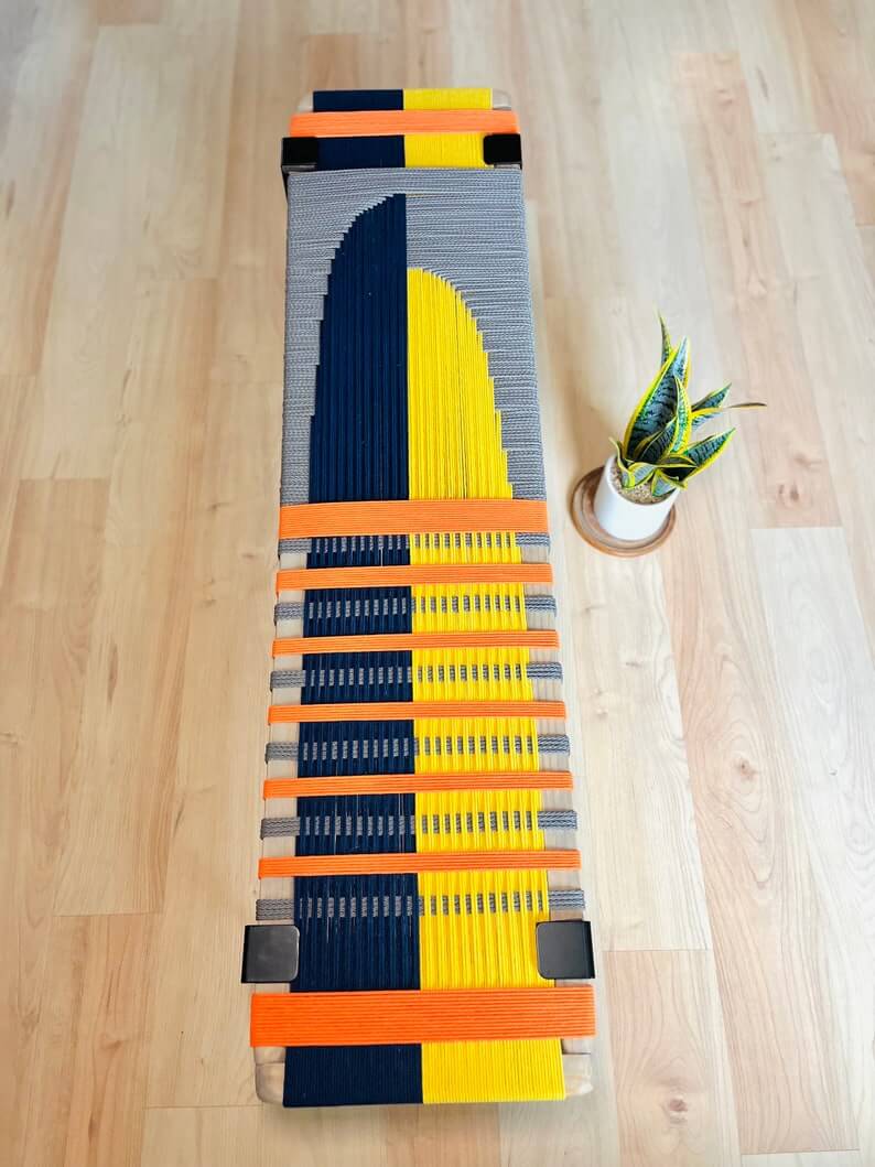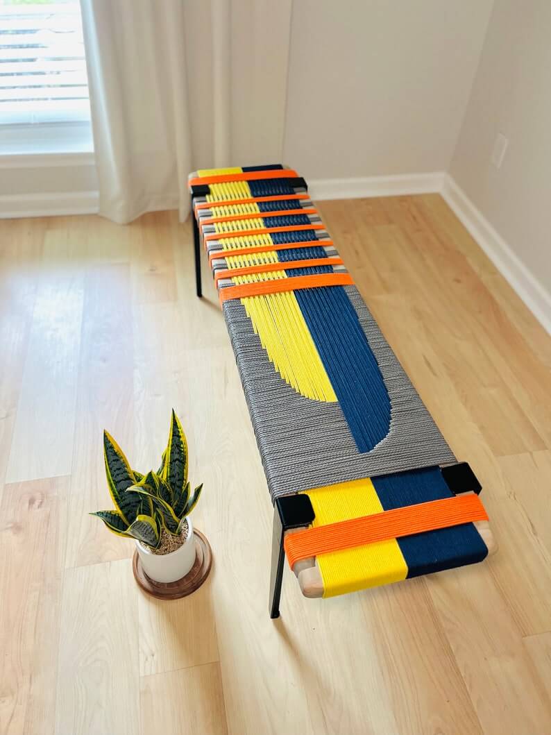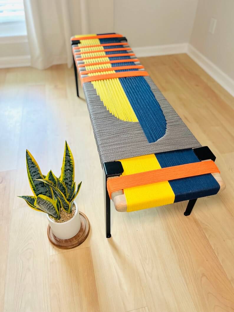 The woven bench is a handmade piece that brings a unique and stylish look to any entryway or living space. Each bench is crafted with care using a weaving technique with cotton cord and natural finish wood that is beautiful, functional and lasts for many years.
