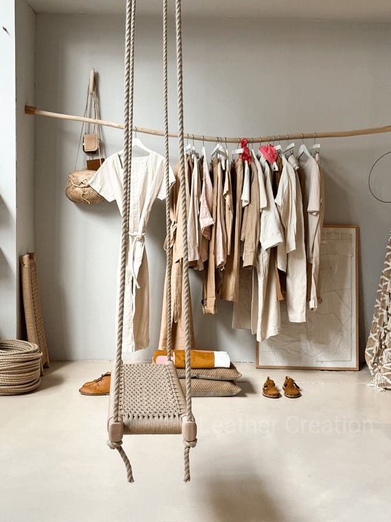 This handmade swing is elegant. A fun and relaxed addition to every home.