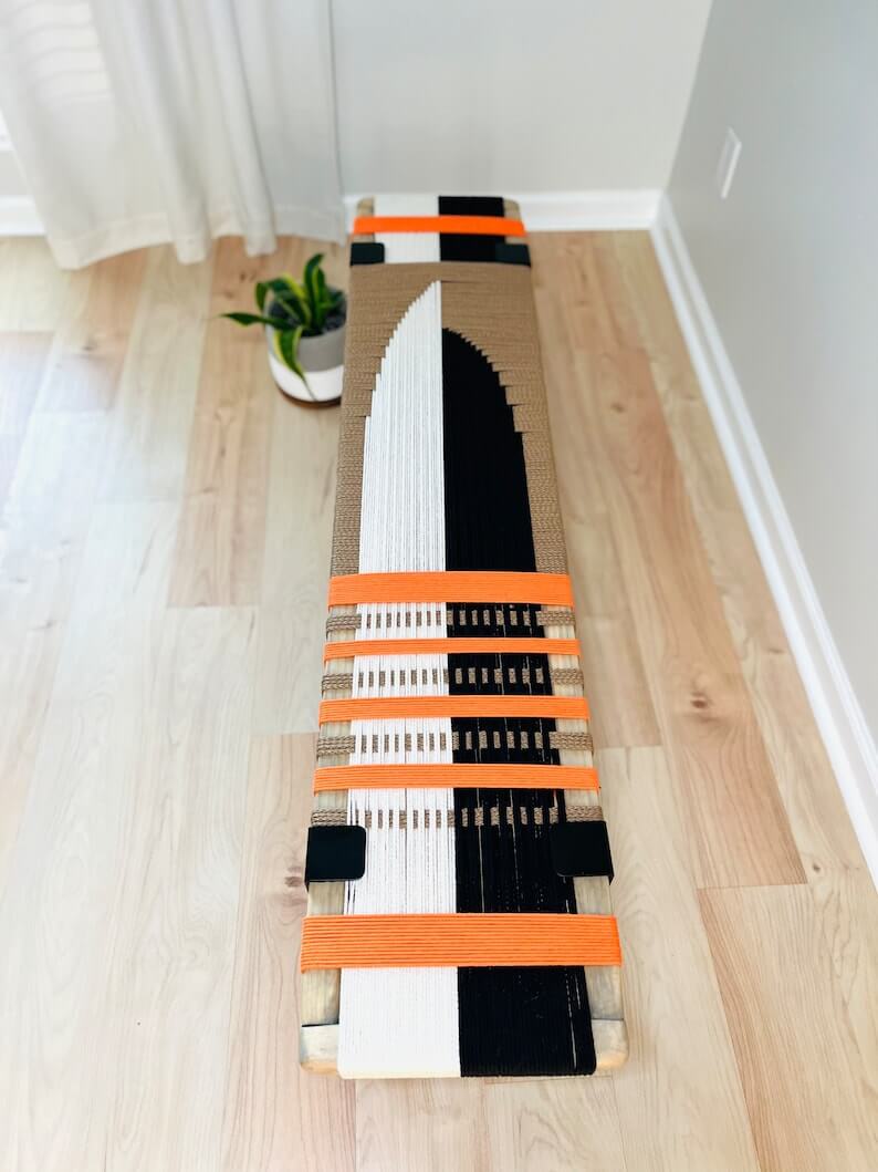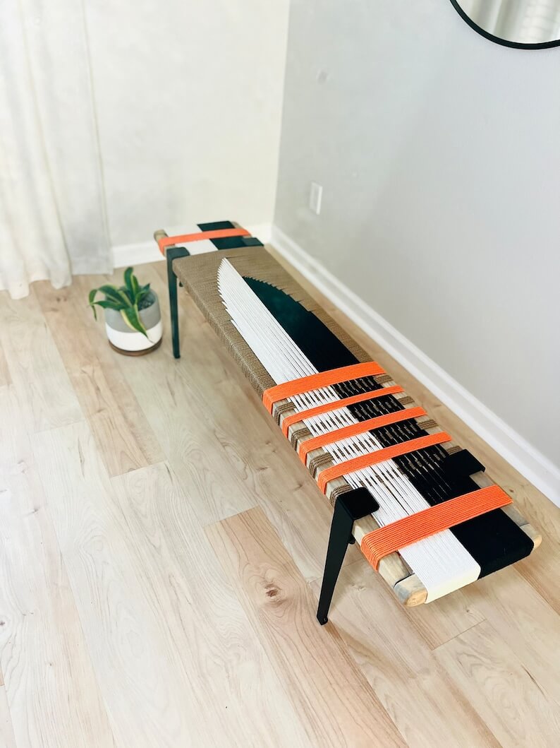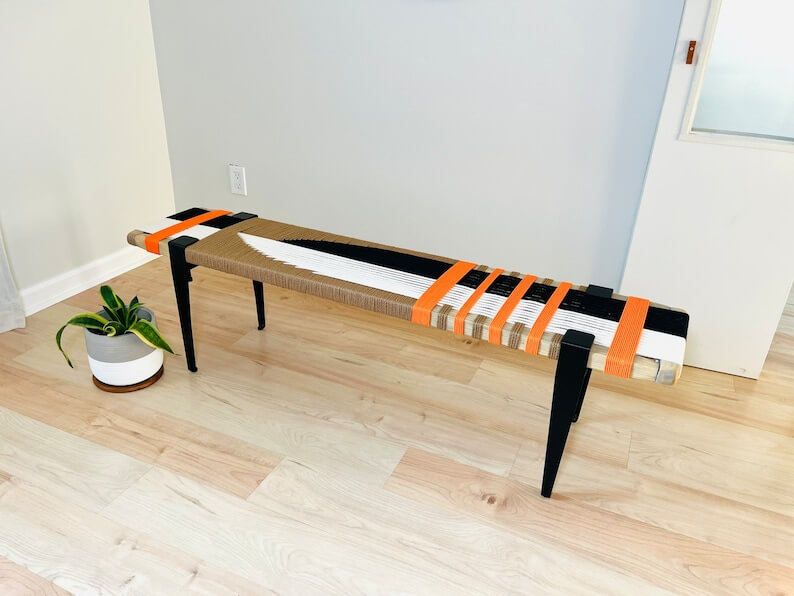 Mid-Century Modern Style Bench • Mudroom / Entryway Bench • Hand Woven End of Bed Stool