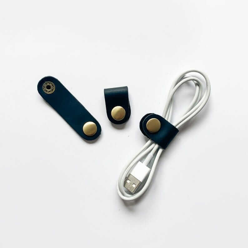 - Set of three leather cable holder