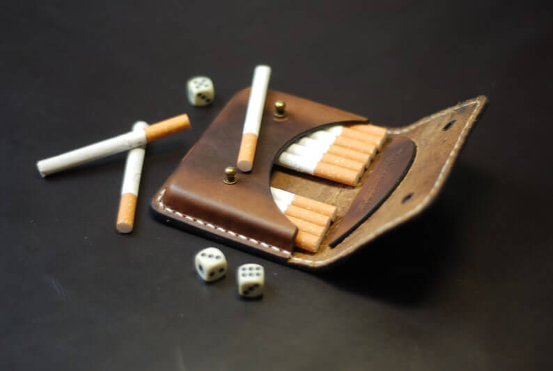 This is a travel case made from genuine distressed cow leather for thirteenth cigarettes. A brown cigarette box for smokers fully hand cutt hand stitched design will be a stylish and elegant addition to your look. A small, ascetic leather cigarette pouch is a fashionable accessory and a great gift that will replenish the collection of useful accessories for connoisseurs of tobacco. The cigar wallet in vintage style will be a perfect present for any man, who can’t imagine his life without cigarettes.