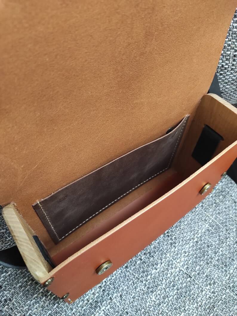 This bag was entirely handmade from the best quality materials. Wood was carefully selected to be worn a lifetime.